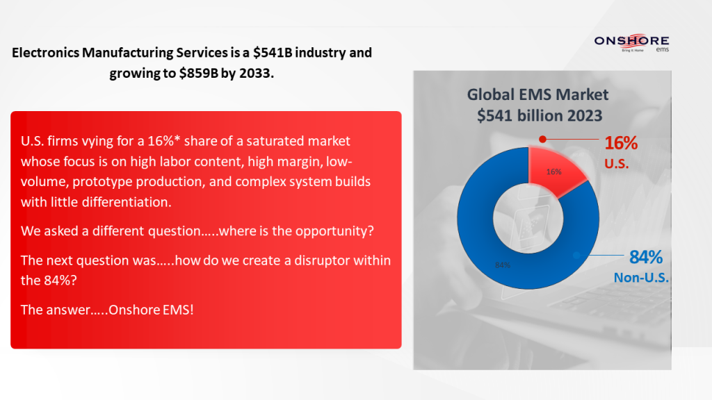 Restore price competitive high volume electronic manufacturing services (EMS) in the US, competing against low-cost regions through horizontally optimized processes driven by AI and the world’s most advanced integrated smart software